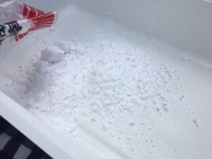 さっきとはぜんぜん違って手から離すと液体になっていきます。