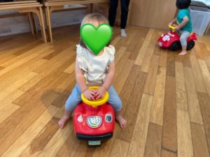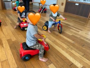 「公園に行ってくるね〜」「ばいば〜い!」など可愛いお話もしながら、乗り物遊びを楽しむつき組さんでした😊