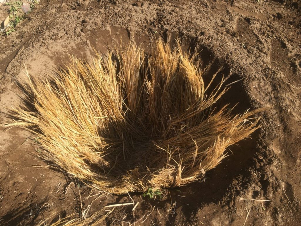 お芋を入れた後にワラを被せて