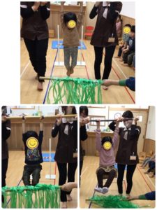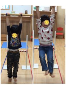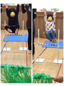 通過後は、足を伸ばしぶら下がる❣️簡単なようですが、腕の力や体幹の安定さが必要❣️一生懸命頑張っていました👏
