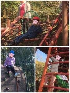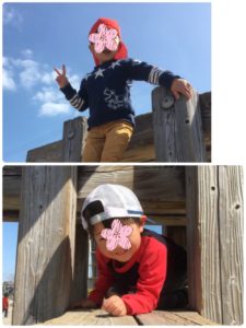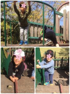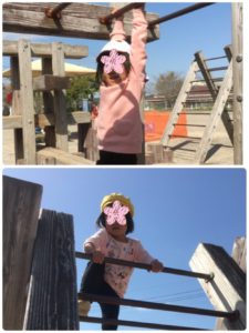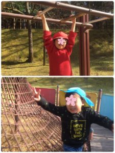 チャレンジの森公園の遊具は、少しハードですが、次々と登ったりぶら下がったりして、挑戦していました😆