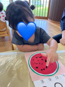お部屋ではお祭りバッグのスイカ🍉を作り!