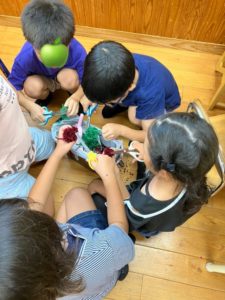 今日もポンポン作りに励む学童さん。