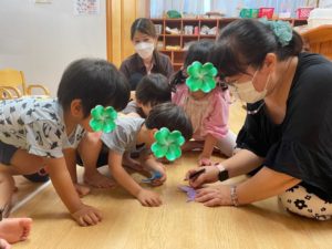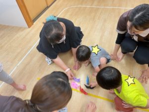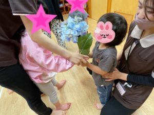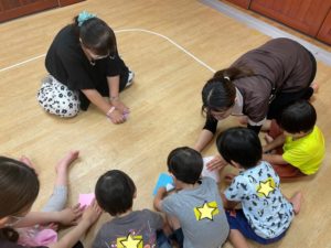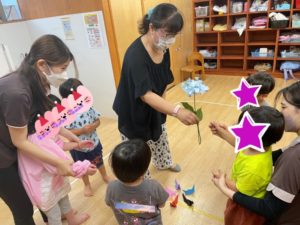 『どうぞ』『ありがとう』のやり取りをしながら、くり返しの歌遊びを楽しみました!