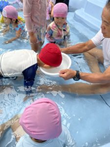 ・カップの水を頭からかける