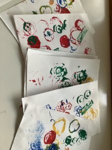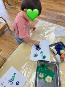 今日のつき組さんゆめ組さんは野菜でスタンプ遊び!