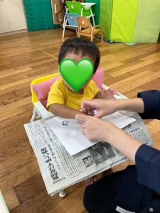先生と一緒に上手にスタンプ!