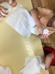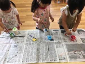 かき氷遊びの後は、みどり先生と一緒に、わらべうたをして過ごしました!