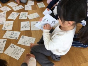 じゃんけんをしたり、「◯◯ちゃんが早かったね」とみんなで最後まで仲良く遊ぶことができました😊