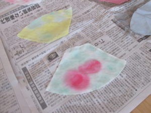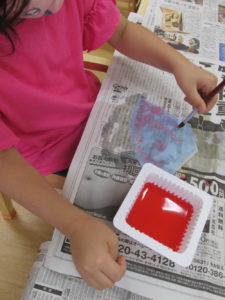 新聞紙を敷いたら、好きな色の絵の具を選んで