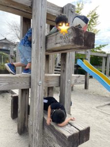 一つの遊具に集まる学童さん…