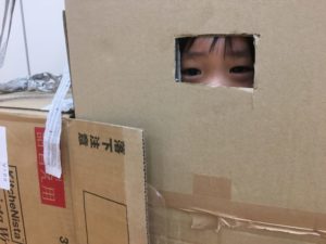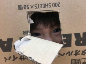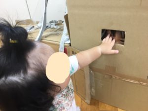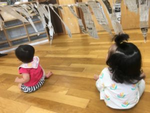 お兄ちゃんお姉ちゃんが遊んでる中、新聞紙のひらひらに興味津々な赤ちゃんたち!