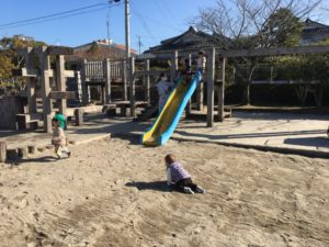と、座り込んでいる姿もありましたが、保育者と一緒に滑るとニコニコ笑顔になっていました♪