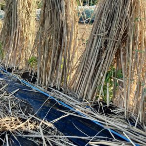 一株ごとに藁を巻き
