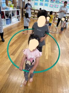 フラフープに入り、電車ごっこ🚃