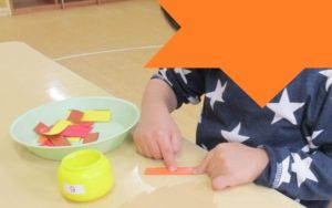 のりを使う時は「1の指で塗ろうね」とお約束をしていましたが、、