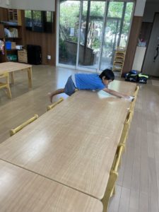 テーブルを消毒して