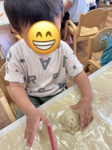 始めは自分の好きな形にこねこね、、、