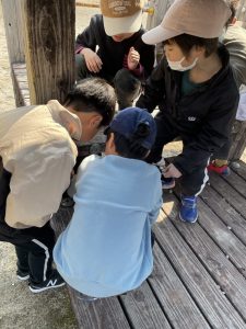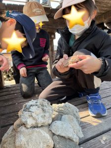 大きめの石を使って知恵を合わせて
