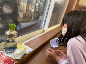 ヒヤシンスも少しずつ成長しています。