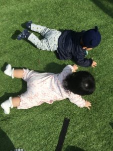 ふたり仲良く芝生に並んでいました😊