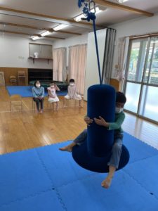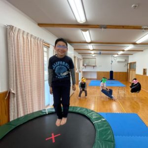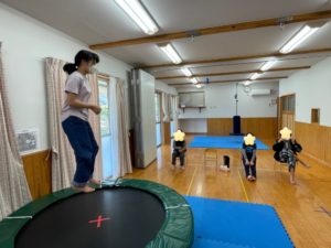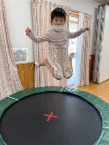 活動はトランポリンやスイングで思いっきり体を動かした後、