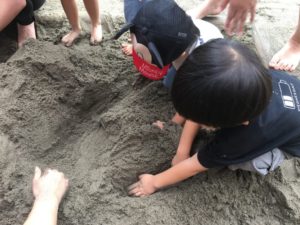 お友だちと一緒に穴を掘ります。