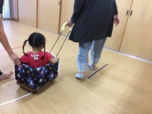 お母さんに引っ張ってもらって