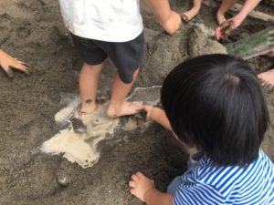砂の感触だけでなく、水や泥の感触も一緒に