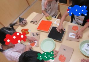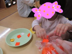 紙をちぎったり、丸めたりして、台紙に貼って、、