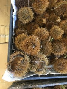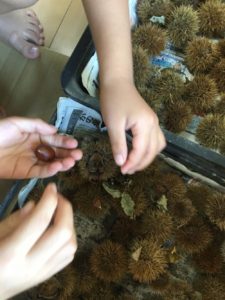 台風の日にたくさん落ちてしまった栗の実・・