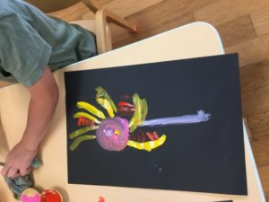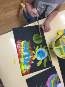 そんなほし組さん。今日は夏の夜空に打ち上げられる『花火』のお絵描きを絵の具でしました!