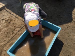 その暑さにも負けず、子どもたちはお外で泥遊びを楽しんでいますよ!