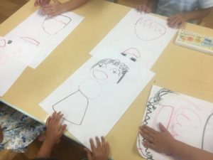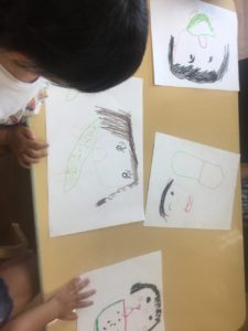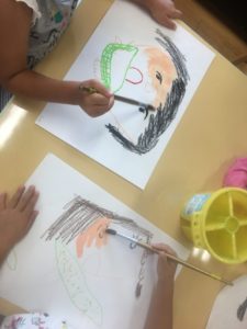 そして、絵の具の使い方を練習しているかぜ組さん!食べ物の色に合わせて塗ったり、肌の色をはみ出さないように慎重に塗ったりしながら作っていきます!