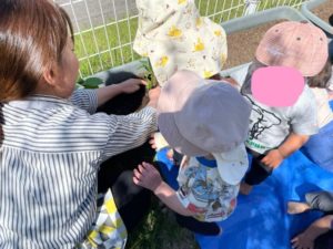 土を一緒に触りながら