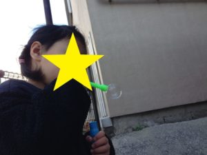 つくったシャボン玉が風で