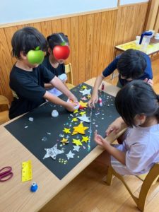 のり・ボンド係と貼る係の役割分担をして~