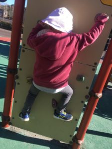 ボルダリングに挑戦中のお友達も!このお友達は次に来た女の子に登り方を教えてくれて「頑張ってね☆」と応援してくれる素敵な姿もありました。