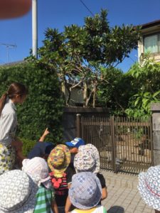 ビワの葉っぱがありました!でも、みんなはビワの前になっているイチジクに夢中になっていましたよ!