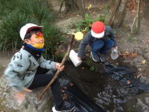 夕方、外で遊び「先生!いい道具ができたよ!」