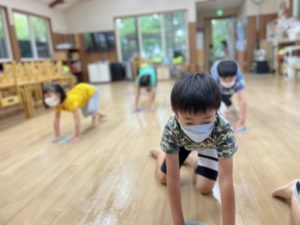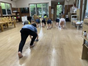 張り切って雑巾がけをしています!