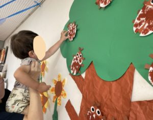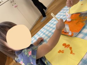 ポン筆でスタンプをして、真ん中の部分はクレヨンでお絵描きをして作りました!