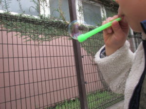 小さいのや大きいシャボン玉ができました❕