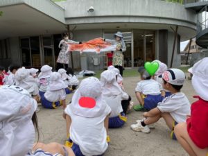 大きなこいのぼりに興味津々のこどもたち。