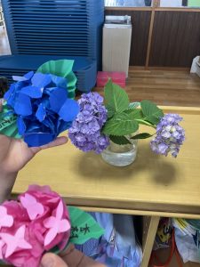 アジサイ制作に励むと