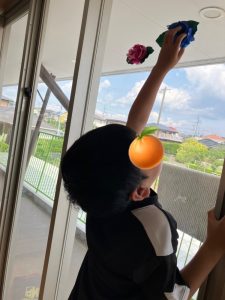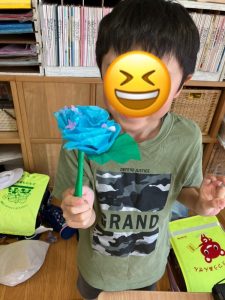 完成した花を自分で飾り