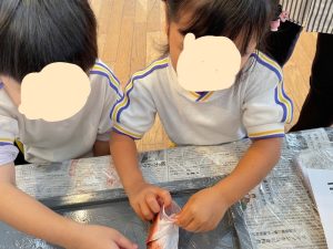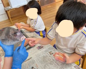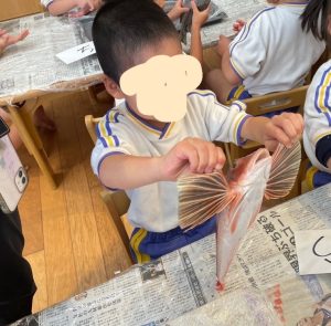 食べ終わった後は魚の骨を観察しました🐟