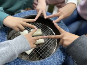 焼けるのを温まりながら