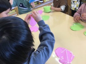 「ひも通しだ!」と思いついたお友達も