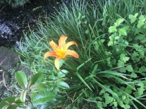 オレンジの百合が🌀台風🌀の風に揺られています。